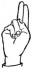 На ћирилици написано ТОМИСЛАВ ГОДОЧЕВИЋ састоји се из 17 слова [?]. Исписано ћириличном једноручном азбуком за глувонеме: